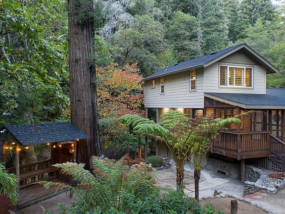Rare offering on historically significant Huckleberry Island. Playground to the S.F. elite at the turn of the century. A true retreat -like property and home is comfortably updated . Featuring, river rock gas fireplace, 2 primary suites, updated spacious, open kitchen. There are views from all windows. Fully fenced, gated and glorious 1.7 acre parcel. A wonderland with meandering pathways, lush landscaping includes all of the country comforts--inviting front porch along with a sweet screened in porch for a lazy day nap. Who doesn't love a built-in BBQ area or hot tub beneath old growth redwoods, playgrounds, garden beds, chicken coop & horseshoe pit. Your very own private sandy beach area. There's a separate 1 bedroom apartment wi/large picture windows & stunning river views. An art studio & 2 car garage. A partially finished basement= game room/workshop with storage. Big and little kids paradise! More to come. Home was featured in the 2016 Santa Cruz Style. This has it all! Magical!