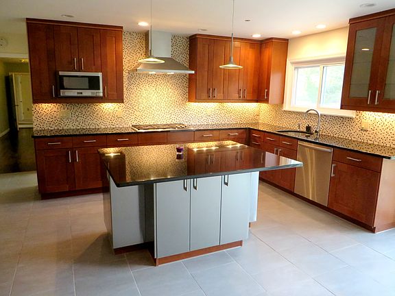 Hard to find, spacious four bedroom, Hunting Ridge Ranch located next to the Hillair Circle section of White Plains. This home boasts an updated, large kitchen with granite counter tops, new cabinets, stainless steel appliances and ample counter space. The large dining area has sliders providing access to the very private fenced-in yard with patio. Perfect house for entertaining with a spacious front foyer which opens to the generously sized living room with recessed lighting, formal dining room and large family room with vaulted ceiling. The sizable master bedroom includes two double closets as well as a master bathroom with double sinks and shower stall. The remaining three bedrooms are family size with great closet space. The lower level is large with high ceilings leaving much potential for utilization. Front foyer includes full stairs up to expandable attic. Newly sided with a new roof as well. Front steps and walk-way are also in excellent condition as is the back patio.