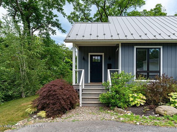 Rhinebeck Village living at its finest awaits you! Previously a 1965 cottage, 10 Huntington Road was transformed in 2019 down to the foundation. This contemporary dream home is set on a quiet road and flanked by trees, creating a tranquil oasis whilst one relaxes or dines al fresco on the outdoor decking. Step inside to cathedral ceiling living. The dining area is offset by a full chef's kitchen and an expansive living area. All are complimented by a wall of hand-crafted bookshelves along the staircase leading to a loft space. Perfect for flex space or that much needed home office. Back on the first floor and down the hall, one has two full bedrooms, two full baths and laundry. The primary suite is completed with walk in closet, and spa like bathroom, transcending one into blissful peace. Rhinebeck and the Hudson Valley welcome you home.