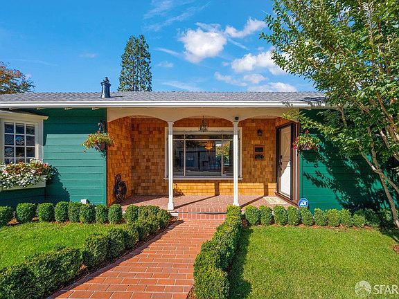 A hidden treasure in Point Richmond's storied hills, this 1952 mid-century gem was crafted by the Allyn family as a wedding gift, a true labor of love built brick by brick. With its soaring 12.5' Douglas Fir ceilings, solid hickory floors, and hand-set English stained and bottle glass, every corner tells a story of artistry, intention, and timeless design. Recently refreshed for modern living, this home features three bedrooms and one beautifully remodeled bath, along with a grand brick hearth, a newly designed chef's kitchen showcasing quartz countertops, updated stainless steel appliances, and custom cabinetry. The converted garage offers unexpected versatility, a masterfully finished, cabinetry-lined flex space now serving as a full home gym and pantry. Outfitted with an infrared sauna, treadmill, and custom storage, it's a serene balance of form and function. Outside, a flowering magnolia anchors the landscape, framing a handcrafted garden shed that mirrors the architecture of the main house, a whimsical touch that captures the home's character and charm. This turn-key home includes a new roof, and gutters, and an EV-ready 200-amp electrical system. Perfectly located just 20 minutes from San Francisco, with quick access to the ferry, bridge, and BART.