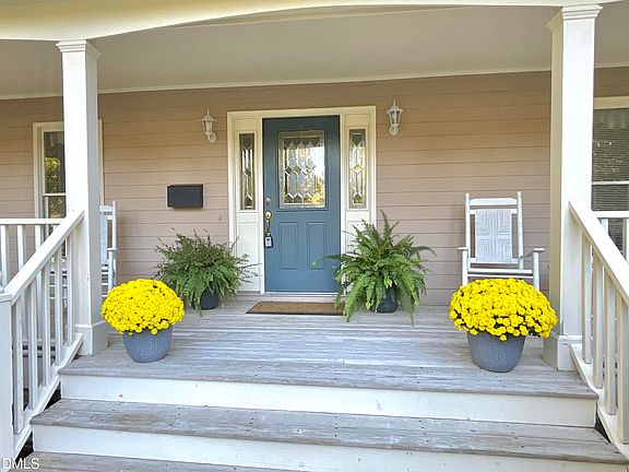 Step into peace and relaxation at 10 Indian Pipe Trail, a beautifully maintained home with a fantastic floor plan, set on an over 2 acre lot! Mainly One-Level Living (bonus room on the 2nd level) featuring 3 bedrooms & 2 baths and 2081 heated square feet, this residence, located in Meadows Crossing, blends comfort and functionality. You will be greeted by the lovely, expansive covered front porch where you can enjoy a good book or sip your morning coffee. Step inside and experience an entrance into a space offering gleaming hardwoods and a bright atmosphere complete with windows showcasing tons of natural light throughout the home. The dining room, highlighted by new Pergo LVP flooring, adds coziness to every gathering of family and friends. Enjoy a seamless flow to the cook's kitchen with pantry —perfect for entertaining and everyday culinary ease. The heart of the home centers around the living room which boasts a soaring ceiling, views of the huge backyard and gazebo and a gas log fireplace which all together make it equally inviting. The highly sought-after first floor primary suite offers a peaceful retreat complete with a bath which features dual vanities, soaking tub, separate shower and spacious walk-in closet. Overlook the picturesque, private backyard featuring an abundance of plants and trees as well as beautiful water views of the neighbor's pond, while resting & unwinding from a long day. 2 additional bedrooms, a full bathroom, laundry room and an abundance of closet space complete the main level. Upstairs, take advantage of the flexible bonus room which offers endless possibilities - perhaps a private study, a playroom, an exercise space, hobby room or a media room escape. Outside, enjoy a true outdoor oasis on over 2 acres—the huge deck overlooks a lush, flat backyard and offers an escape from everyday life - relaxing fall evenings enjoying a cup of hot chocolate or grilling out to entertain family and friends. A two-car garage and separate storage building provide a ton of additional space. Experience the tranquility of country living while being just minutes away from all the city conveniences. This is more than a home - it's an opportunity you don't want to miss - with NO HOA DUES! Just a smooth, comfortable drive away from the Duke University & Medical Center, Downtown Durham with its vibrant restaurants and nightlife and RTP. Close to amenities including golf at Lake Winds, plus hiking and water recreation at Lake Michie and fishing at the Little River Park and Marina. This home offers both convenience and serenity in equal measure. Visit 10 Indian Pipe Trail today and be met with your own private oasis offering a peaceful connection to nature. This one won't last long!! Property to be sold in As-Is Condition.
