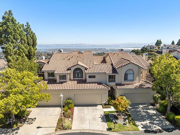Set atop a serene hillside, this stunning 2,446 sq. ft., two-story home offers breathtaking San Francisco Bay Area views. With 3 bedrooms, 2.5 baths, and an office (which can serve as a fourth bedroom), it's perfect for both work and relaxation. The elegant entry leads to a living and dining room with a double-sided fireplace and stunning views. The well appointed kitchen boasts top-of-the-line Bosch appliances, a breakfast bar, coffered ceiling while the family room features a wet bar for entertaining. The primary ensuite features a spa-like retreat, a deluxe sunken tub, a luxurious shower, and a spacious walk-in closet. Outside, enjoy a private gated courtyard and a large entertaining deck. Additional features include hardwood floors, central A/C, intercom, and a two-car garage.
