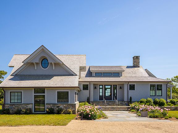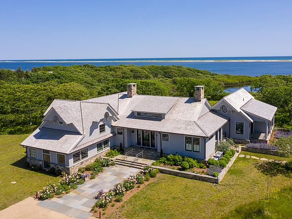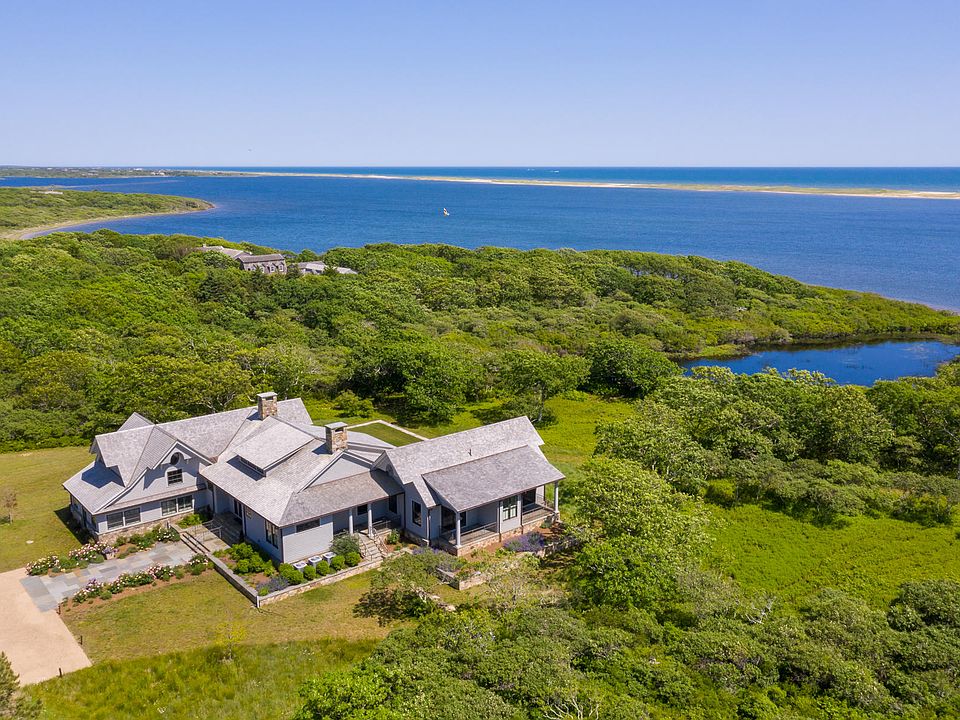 Rarely does a brand new home become available in such a distinguished neighborhood. Set on 14 waterfront acres in Boldwater on the south shore of Martha's Vineyard stands this 4,250 sq foot home built to the very highest specifications. The open floor plan allows the entire family to gather in the Great Room with living, dining, and kitchen areas all combined beneath soaring cathedral ceilings. The bedrooms are large and offer gorgeous water views. There are several outdoor spaces to take full advantage of the stunning natural surroundings. In the morning you can sit and enjoy a cup of coffee while you watch the osprey swoop and soar to the background music of the ocean waves. The screened porch is a gathering place in the evenings before dinner is served.