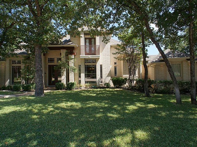 A RARE FIND IN TROPHY CLUB! With a nod to Frank Lloyd Wright design and Craftsman touches, this home is located in a small enclave of fine custom homes on a heavily treed cul-de-sac. Open floor plan, high ceilings & crown molding. Recent wood flooring! Island kitchen boasts custom cabinetry & double ovens. The secluded master & spa-like bath are adjacent to a sparkling pool & spa showcasing the private backyard. Over-sized split 3-car garages.