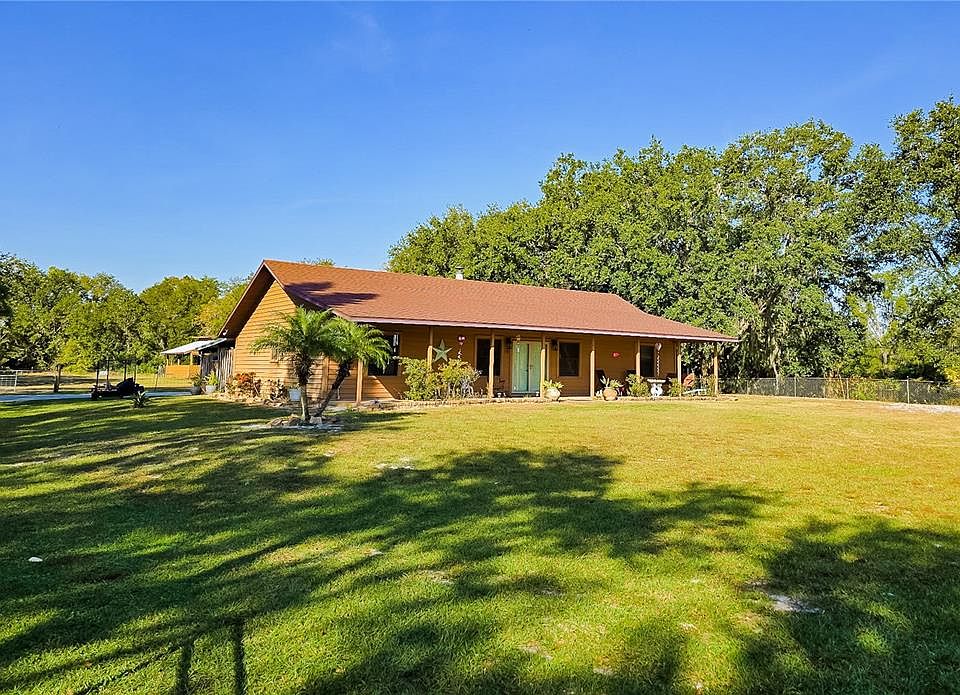Experience the best of both worlds — peaceful country living just minutes from town! Tucked away on a quiet street, this beautifully updated home sits on over 2.3 fully fenced, irrigated acres, offering the perfect blend of space, privacy, and convenience. Whether you’re dreaming of a small hobby farm, a garden paradise, or simply room to roam, this property delivers. Step inside to a warm and inviting interior featuring cathedral ceilings with rustic wood beams, an open split floor plan, and tile flooring throughout. The updated kitchen, complete with modern appliances and generous counter space, overlooks the spacious living room highlighted by a wood-burning Heatilator fireplace — perfect for cozy nights in. Enjoy your morning coffee and watch the sunrise from your large covered farmhouse front porch or watch the sunset in the evening from the screened-in porch accessed through elegant French doors off the bonus room. Energy efficiency shines here with double-pane Anderson windows and doors, low electric bills, a new roof, and a 7-year-old A/C system for peace of mind. Conveniently located near the Polk Parkway, this home offers an easy commute to Lakeland, Tampa, or Orlando — giving you rural serenity without sacrificing access to the city. Whether you’re just starting out or looking to slow down and savor the good life, this property is the perfect fit.