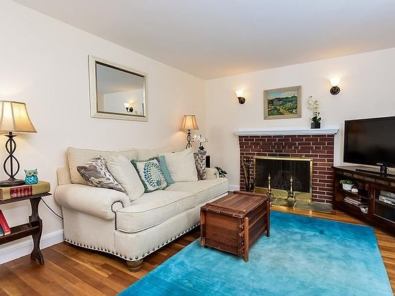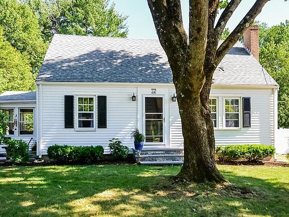 Beautiful, bright and sunny 1950's 3 bedroom Cape in highly desirable neighborhood close to town, park and schools. This home features a charming fire-placed living room with two large windows overlooking a lovely front yard. The adjoining dining room is spacious and opens into the large and sunny eat-in kitchen. The welcoming enclosed porch with new berber carpet is off the kitchen and makes for both a mudroom and perfect place for relaxing and enjoying cool breezes. The main level also offers a large bedroom (or possible office) and a newly updated full bath. Upstairs are two huge bedrooms with extra storage and a brand new bathroom with an extra large shower. Hardwood floors, good ceiling height, replacement windows, new front door and entry steps, new hot water tank and updated boiler all add to the exceptional quality of this home and its supreme condition. Finished, heated basement with separate workshop/utility area. Fenced in backyard. Just about 1/2 mile to Starbucks, town, elementary school, park, and about a mile to high school make this home ideal!