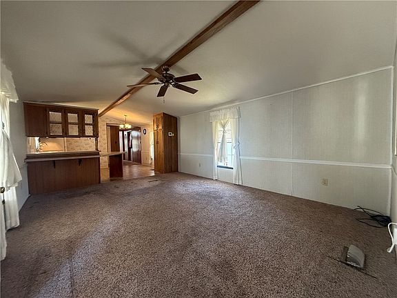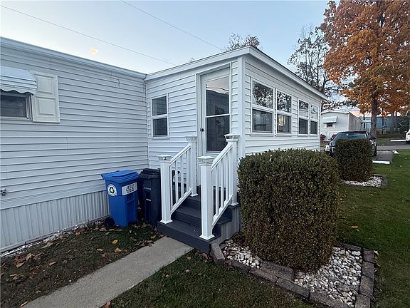 Welcome to this well-kept mobile home located in the 55+ community at K and L Mobile Home Park - conveniently located near shopping and restaurants, just off of Route 422 in Butler. The serene sunroom was added on offering the door that leads into the spacious living room with neutral decor and vaulted ceilings that are throughout the home. The eat-in kitchen offers abundant cabinetry with space for a table as well - all appliances included. This two-bedroom home offers a great layout with a bedroom and full bathroom at both ends of the space. A separate laundry room comes with the washer and dryer and leads to the back porch. A convenient shed is outside for additional storage. Great opportunity to join this sweet community!