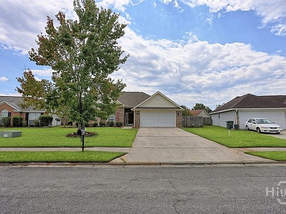 Welcome home to the beautiful Hampton Place subdivision — with no HOA fees! This charming 3-bedroom, 2-bath residence features an open, split floor plan designed for modern living. The Great Room boasts a vaulted ceiling and a cozy fireplace, creating a warm and inviting atmosphere. Freshly painted throughout, the home feels brand new. The spacious primary suite includes a large closet and a relaxing bath with a garden tub/shower combination. Enjoy outdoor living in the fenced backyard with a covered patio — perfect for entertaining or unwinding. Conveniently located near I-95, I-16, Gulfstream, Tanger Outlets, Hyundai, the Savannah Airport, and more.