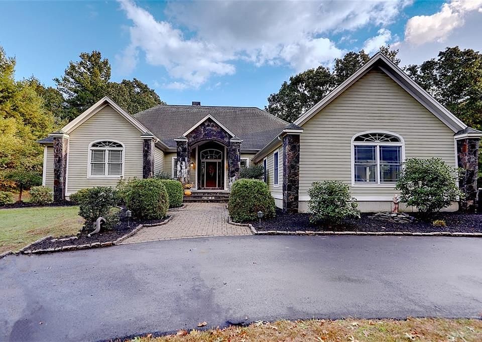 Private sanctuary set on 6 acres of land, meticulously constructed, beautiful oak floors, Italian ceramic tile, dual ovens, gourmet kitchen and a terrific stone veranda that greets you as you pull up in the large circular driveway. This open floor plan is perfect for entertaining and the living room opens up into the large covered patio/deck. The road is private with town snow removal! newly built Treehouse that every kid would dream of having. There is also a new 12x20 shed in back, and beautifully landscaped grounds.