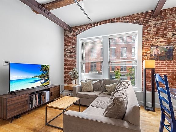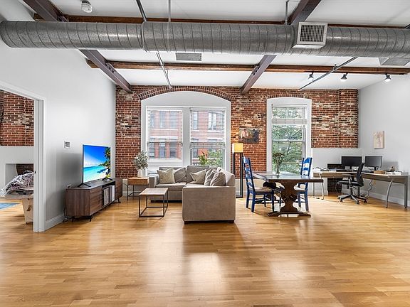 In the vibrant heart of Lowell, this open-concept loft offers a perfect blend of modern luxury & historic charm. The chef’s kitchen features sleek maple cabinets, stainless steel appliances & granite countertops, ideal for culinary adventures. The expansive living & dining areas showcase industrial elegance with original exposed brick walls, high ceilings with steel & wood beams & large windows framing the lively cityscape. The spacious bedroom highlights a walk-in closet & continued brick accents, while the adjoining bathroom is a serene retreat with ceramic tiles, a soothing tub & ample storage. With in-unit laundry & central air conditioning, comfort is assured year-round. Sensi smart thermostat. Pets are allowed, along with leases over a month. Large basement storage locker. Conveniently located near Routes 495 and 3, the loft is steps from Lowell's museums, art studios, sports venues, the Merrimack River, dining options & UMass Lowell. This loft isn’t just a home—it’s a lifestyle.