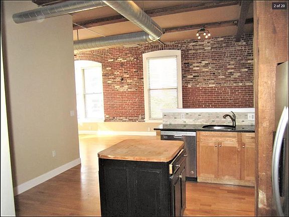 Kearney Square corner loft condo overlooking historic canal and active trolley rails. This 2 bedroom 2 bath garden unit will inspire you as the city comes alive around you. Park your car and walk steps to the college, theater, auditorium and restaurants. If you love brick walls, beamed ceilings, stainless steel and granite, wood floors and seven windows to see the city around you this is your new loft! Owner pays for water and trash. Renter responsible for gas and electric. No smoking. Parking options are: lot behind building (open) or public garage (locked) - both around $50/month.