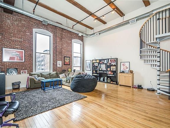 Stunning!! This Downtown Lowell Loft is located in the highly desired "Fairburn" building. This expansive open-concept unit boasts 18' high ceilings, exposed rustic brick, gleaming hardwood floors, gorgeous maple cabinets and more! The larger than life windows bring in tons of sunlight and features picturesque city views. Travel up the whimsical spiral staircase to the spacious mezzanine bedroom overhead. Only minutes from hot new restaurants, galleries, museums, colleges, parks, and entertainment. This unit is steps from the Lowell Auditorium, Tsongas Arena, UMASS Lowell and all the fun amenities Downtown Lowell has to offer. This unit will not last long, come see it today!