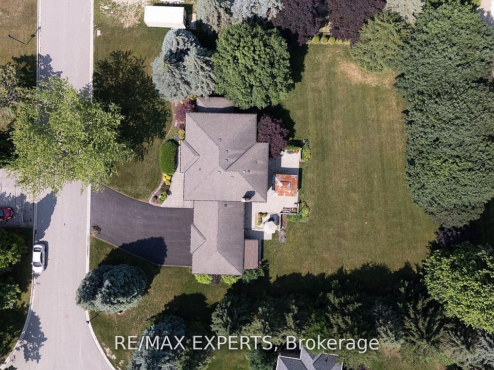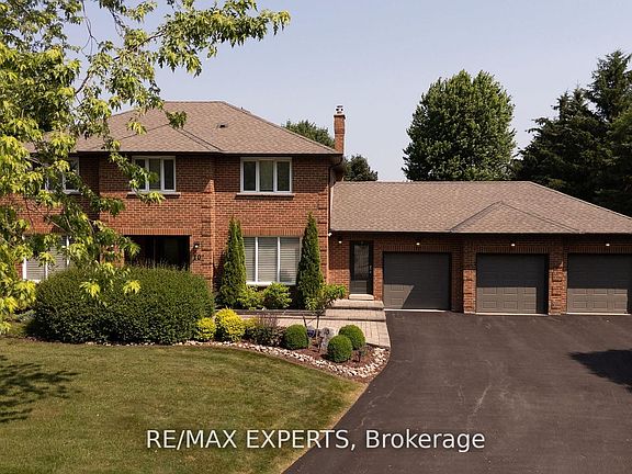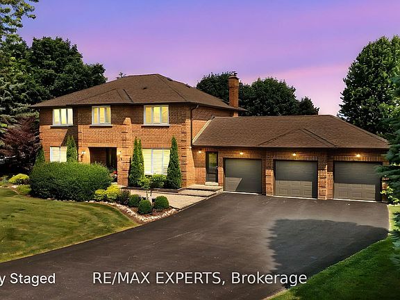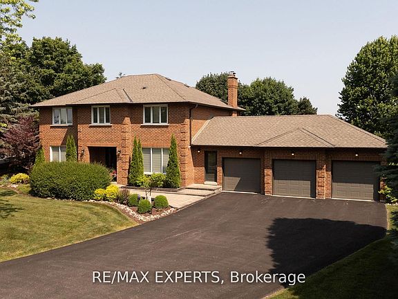 Nestled in Nobleton on a quiet cul-de-sac, this move-in ready home offers a peaceful setting away from traffic and developments. The property sits on an expansive premium lot measuring144.6 by 168.26 feet (0.586 acre), perfect for those seeking a spacious estate surrounded by mature landscaping and exceptional privacy. With 3,000 square feet of living space, the meticulously maintained executive residence features four large bedrooms and three modern bathrooms in a prestigious neighborhood. The main floor stands out with plenty of pot lights, smooth ceilings, large tiles, hardwood floors, and an open-concept living and dining area that over looks the scenic backyard. The kitchen boasts a black Riobel faucet, side-by-side Fisher Paykel fridge/freezer, Bosch induction stove and dishwasher, plus a dedicated coffee and beverage nook-ideal for entertaining guests. Flooded with natural light, the family room includes a wood-burning fireplace and relaxing views of the vast yard. Enjoy the home as it is or make changes, such as converting the dining room into a walk-in pantry or opening up space by removing the kitchen-family room wall. A bright office with crown molding can easily serve as a fifth bedroom or a main floor primary suite. Additional features include a practical mudroom entrance, direct garage access, and a convenient laundry area. Upstairs, the luxurious primary suite offers a walk-in closet, a second spacious closet, and a stunning five-piece ensuite with a freestanding tub and separate shower. Three more roomy bedrooms and a large four-piece bathroom provide comfort and flexibility for families and visitors. This property also includes three attached garages and a generous driveway that can accommodate over nine vehicles. Designed for both entertaining and relaxation, every aspect of this estate home seamlessly combines luxury, contemporary style, and everyday functionality. If you are looking for an estate lot with privacy, this one is for you!