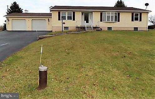 Real nice 1 story home, maintenance free on approx. 1/2 acre. 3 BR's, 2 full baths, 14x19 main level family room with walk out to 12x25 patio, large MBR with walk incloset and full bath, eat in kitchen with Corian countertops, Jenn Air electric range top, B/I electric oven, Maytag B/I dishwasher, main level laundry includes: washer/electric Whirlpool dryer. Natural gas hot water baseboard system w/2 zone. Thermo tilt-in windows, breezeway and large oversized 2 car garage. Timberline architectural shingle roof, 10x12 shed. 200 AMP sq. D. electric, full concrete basement, 5x11 front porch, blacktop driveway for 10 cars. NOTE: Accessory kitchen in basement double stainless sink not hooked up. NOTE: Sellers purchased the land in 1984 and 3 section modular home was built in 1986 dated certificate of completion at to left side of stairway to basement. Tax records reflect house built 1980 that is incorrect. Settlement must be on or before July 10, 2020. EXCLUDED: Lace curtains in dining room and microwave.