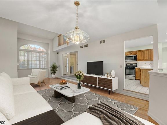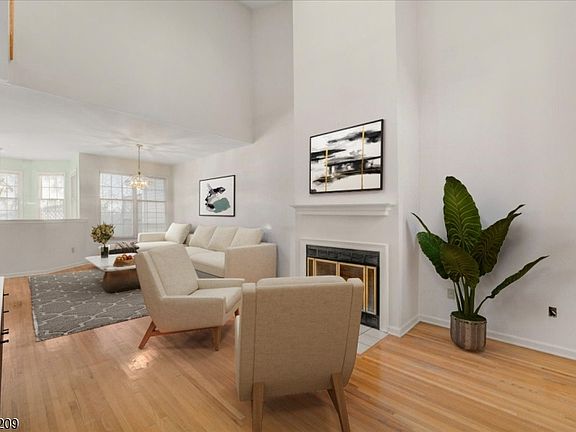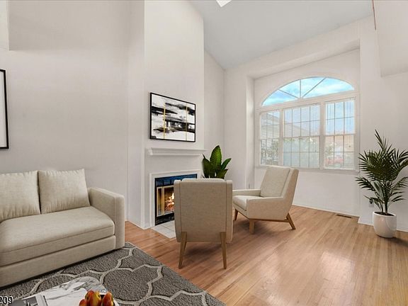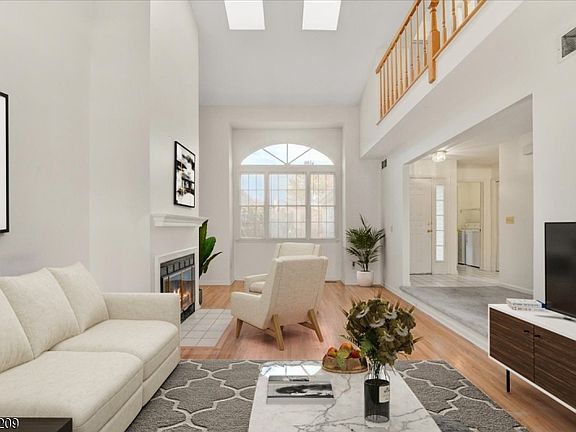 Welcome to Skyline Village at Lincoln Park ? a highly desirable townhouse community offering resort-style living with a sparkling pool, country-club clubhouse, and beautifully landscaped surroundings. This spacious multi-level home features an insulated 1-car garage, private driveway, and recently replaced 3D architectural roof with seamless gutters tied directly into the French drain system for added peace of mind. Step inside to an impressive family room adorned with soaring vaulted ceilings, recessed lighting, hardwood flooring, and a cozy wood-burning fireplace that creates the perfect atmosphere for relaxing or entertaining. A beautiful multi-level deck extends your living space outdoors, ideal for morning coffee or summer gatherings. Downstairs, the partially finished basement provides exceptional bonus space, complete with an office area perfect for remote work, hobbies, or additional storage. Upstairs, you'll find two generously sized bedrooms and two full bathrooms. The primary suite is a true retreat featuring vaulted ceilings, a sitting area, a private balcony, and an ensuite bath. Additional upgrades include a replaced furnace, hot water heater, and AC system, ensuring comfort and efficiency throughout the seasons. Located just minutes from the train station with direct access to New York City, this home combines convenience, comfort, and community amenities in one exceptional package.