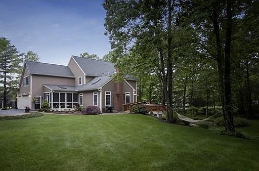 Spectacular custom designed Colonial in desirable cul de sac neighborhood only minutes to the Mass Pike/495! Great layout and Universal Design with 1st floor en suite bedroom. Wonderful flow for entertaining and flexible 2nd floor layout with optional additional bedroom or office. Outstanding professionally landscaped back yard retreat with hot tub, large deck and private setting abutting conservation land. Dramatic Family Room with floor-ceiling stone fireplace & mantel, Cathedral Ceiling with skylights open to Gourmet Kitchen with custom birch cabinets, granite, tumbled marble backsplash, dual height island, pantry, lighted glass-front cabinets, b/i desk, warming drawer, central vac kick-plate & wet bar. Lovely screened porch, 3rd floor bonus room and finished basement with full windows, playroom & kitchenette not included in the listed square footage. Large rooms, filled w/ upgrades including 7" crown and egg & dart moldings and 3-car garage.