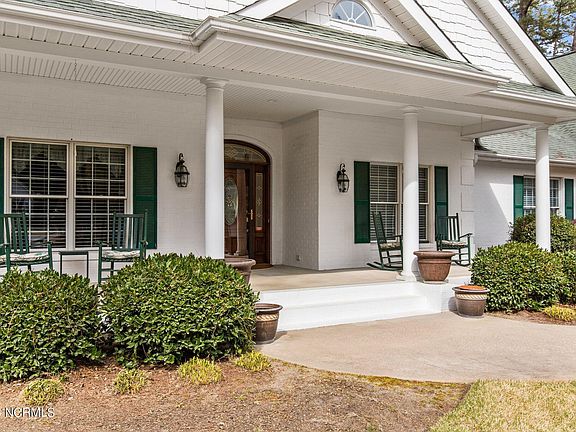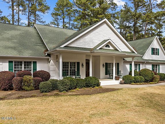 PRICE REDUCED! Beautiful all brick home with wide rocking chair front porch located on large corner lot in gated golf community of Pinewild Country Club. Approximately 3,281 sq ft of prime living with many upgrades and large, open spaces which are convenient for entertaining yet still lends a cozy home atmosphere. This home has large foyer, formal dining and living room with gas fireplace, home office with french doors, and a breakfast and casual sitting area for less formal engagements. The large, inviting kitchen offers double ovens, smooth cooktop, tons of beautiful cabinetry and large island with additional storage. The master and second bedroom as well as two full baths are located on the main level with third bedroom and full bath on the second level bonus room complete with charming and convenient kitchenette; excellent for overnight guest. For your outdoor enjoyment don't miss the enclosed rear porch complete with EZ Breeze screening as well as a partially covered rear patio for larger gatherings and outdoor barbeques. Mature landscaping offers privacy and beauty. Large two car garage and golf cart garage. Location is convenient to Hwy 211 gate and close proximity to shopping.