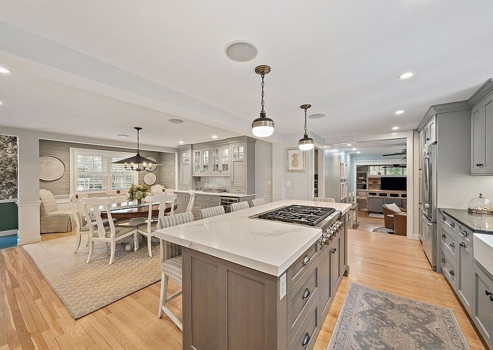 Luxury design & custom features meet warmth & comfort in this stunning colonial home. A true entertainers dream, inside & out, featuring a chef's kitchen, 4 bedrooms, 3.5 bathrooms, home office space & a variety of entertaining areas. Complete kitchen & dining renovation in 2017 with custom cabinetry & lighting, stainless steel Thermador appliances, a large island with gas cook-top, granite & quartz countertops & a butler’s pantry. Newly updated living room with gas fireplace & elegant tile surround, with a bay window seat overlooking the backyard entertaining oasis: in-ground pool, sport court, putting green & driving net, covered deck, patios, & professional landscaping, accent lighting & irrigation. Spacious bedrooms with 2 ensuite options: a generous main ensuite with recently upgraded dual walk-in closets and a secondary ensuite perfect for guests. Situated on nearly 1 acre, in a desirable neighborhood location, with close proximity to University Station shops, MBTA, Rts. 95/128.