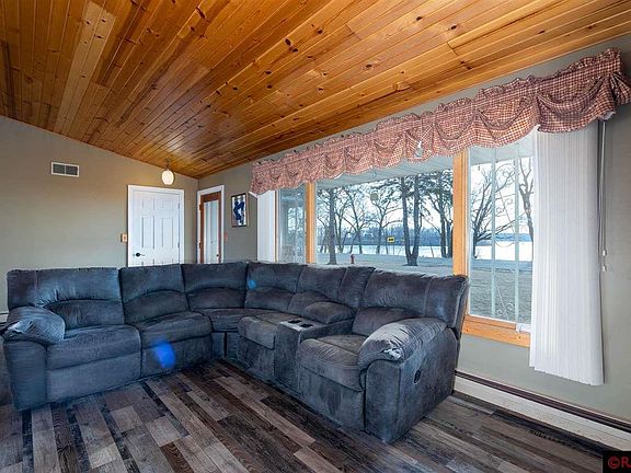 Welcome to the lake and this meticulously maintained ranch home on Madison Lake with 102 feet of sandy beach shoreline that sits on .9 acre! You feel right at home as you enter through a large bright foyer with closet space and plenty of room for several guests to enter at once. From there you will enter the kitchen, dining room and living room area with vaulted ceilings to give it that open and spacious feel! This area has newer updates which include granite countertops, backsplash and laminate flooring. The custom-built knotty pine cabinets and ceiling add to the lake experience and brings about a warm relaxed feeling. The gas fireplace can be seen from all three rooms. Light fixtures throughout the main floor have been tastefully updated. A large window in the living room allows for a very picturesque view of the lake! The guest bathroom has recently been updated. The primary bedroom has a private bathroom with an oversized tiled shower. The attached 2 car garage had been converted into a large bonus room, and it awaits your finishing touch and imagination for the many possible uses it generates! The bonus room has an electric furnace. The full basement has a tiled family room, third bedroom with egress, workshop area, large storage room, 3/4 bathroom and utility room. Outside you will find a patio wired for hot tub, a two-car garage, and a large shop. The shop is heated and has plenty of room for lake toys like boats and pontoons. It has a bathroom and can be used for entertaining guests. There is abundant room for parking. The lake shore area has a firepit and bar area to enjoy relaxing summer days, beautiful sunsets and entertaining nights. You’ll want to call this place home! $1,500 carpet allowance for bedroom. Seller related to agent.