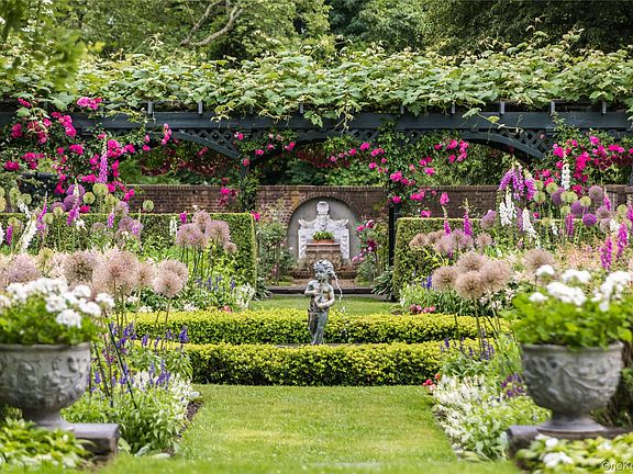 The estate's grounds are equally impressive. Designed by the legendary Frederick Law Olmsted, the landscaping is a true work of art, including a fragrant English garden, a walled rose garden, and expansive vegetable and herb gardens. Included in the Historic Gardens Registry at the Smithsonian Institute, the lush scenery overlooks the North Shore coastline and offers complete tranquility. The beautiful brick-columned pool house, with views of the sparkling in-ground pool and spa, is the perfect retreat for relaxation during the warmer months.