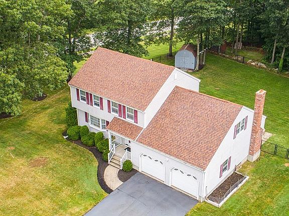 Gorgeous, WELL-MAINTAINED, four bedroom Colonial situated on a LARGE CORNER lot in an amazing FAMILY neighborhood on a cul-de-sac street. The first floor consists of a formal living area with new RECESSED LIGHTING opening up to the dining room.The UPDATED eat-in kitchen has STAINLESS steel appliances and GRANITE counter tops.The bay window lets in lots of SUNLIGHT and overlooks the ENORMOUS fenced in backyard with an IRRIGATION system, storage shed and FIRE PIT perfect for SUMMER entertaining! The large family room on the main level has a cathedral ceiling and an updated brick fireplace.Features on the second floor include updated bathrooms, NEW HARDWOOD FLOORS, walk-up attic, 3 good sized bedrooms, one of which has custom built-ins, and a huge master suite! The partially finished basement is the perfect space for a game or toy room with EXTRA STORAGE and a WORK SHOP plus a 2 CAR GARAGE! Close to local restaurants, shopping and travel routes 3, 495, 93 and commuter rail. A MUST SEE!