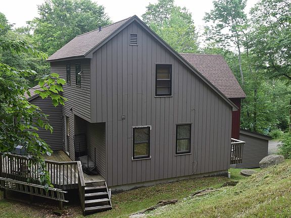 Welcome to the exquisite contemporary chalet-style home for sale in the prestigious Chimney Hill development. This stunning residence offers 5-bedrooms and 3-1/2 bathrooms, providing ample space for your family and guests. The master bath is ensuite. With two cozy fireplaces, this home is perfect for enjoying cold winter nights. The updated kitchen and bathrooms feature modern fixtures and finishes, creating a luxurious atmosphere. The new flooring, furnace and a new roof add to the home's appeal, ensuring both comfort and efficiency. A highlight of the property is the timber-framed cathedral Livingroom, adding a touch of rustic elegance. Additionally, the home includes a convenient ski equipment room and is being sold fully furnished. Nestled on a spacious 2-acre lot, you'll enjoy the tranquility and privacy of the surroundings. Located a mere 15 minutes from the renowned Mount Snow ski area, and just 5 minutes from the lake and downtown Wilmington village, this property offers an ideal combination of convenience and natural beauty. Don't miss this rare opportunity to own your dream chalet in an unbeatable location.