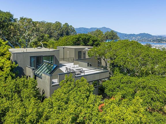 Designed by locally renowned architect Jacques Ullman, the iconic Gropper/Hoyt House embodies modern Sausalito living--where dramatic architecture, luminous interiors, and sweeping views of Richardson Bay converge. At the end of a quiet cul-de-sac, it offers rare privacy, with a discreet stairway providing direct access to town favorites like Driver's Market, Equator Coffee, and Bar Bocce. Configured with two private wings, the layout emphasizes light, flow, and seclusion, each space oriented to frame the scenery. Walls of glass and skylights bathe the living and dining areas in sunlight, anchored by a sleek fireplace and an open chef's kitchen with large custom pantry. A striking office/library overlooks the marina, while flexible spaces--including a media room and a multi-purpose wing with kitchenette--adapt for work or leisure. An additional studio with a private entrance creates a serene retreat for art, music, or study. Multiple view decks and an expansive rooftop terrace foster seamless indoor-outdoor living. Upgrades include dual central A/C, Hunter Douglas shades, Elfa storage, new refrigerators, landscape lighting, monitored alarm, dog run, and custom garage cabinetry with lighted workbench. A rare architectural statement, the home unites refined design with modern ease.