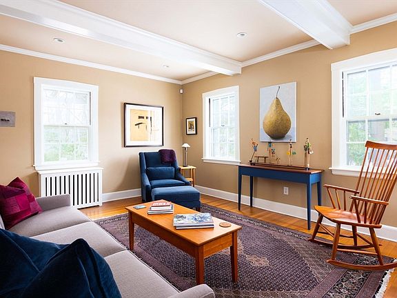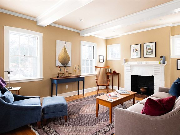 Ideally located in Newton Centre near Crystal Lake and the Mason Rice School, this Greek Revival residence has been extensively renovated. The front porch opens to a gracious foyer which leads to a lovely living room with a beamed ceiling and a fireplace, an oversized dining room surrounded by windows overlooking the yard, and a renovated kitchen appointed with custom cabinetry, an island, and stainless steel appliances. The kitchen opens to a fabulous family room brightened by its many windows. The second level is comprised of a primary bedroom, two other bedrooms, a spa-like renovated bathroom, and laundry. Additional features include beautiful hardwood floors, original detail, updated central air-conditioning and gas appliances, and a newer roof. The grounds have mature plantings and a lovely patio. This property is convenient to the “T” and everything Newton Centre has to offer.