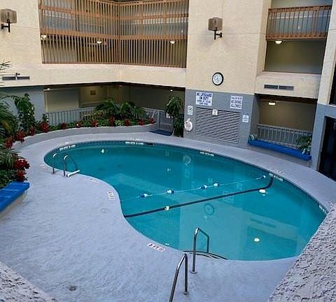 A resort setting with indoor and outdoor pools. Close to Celebration Park ,