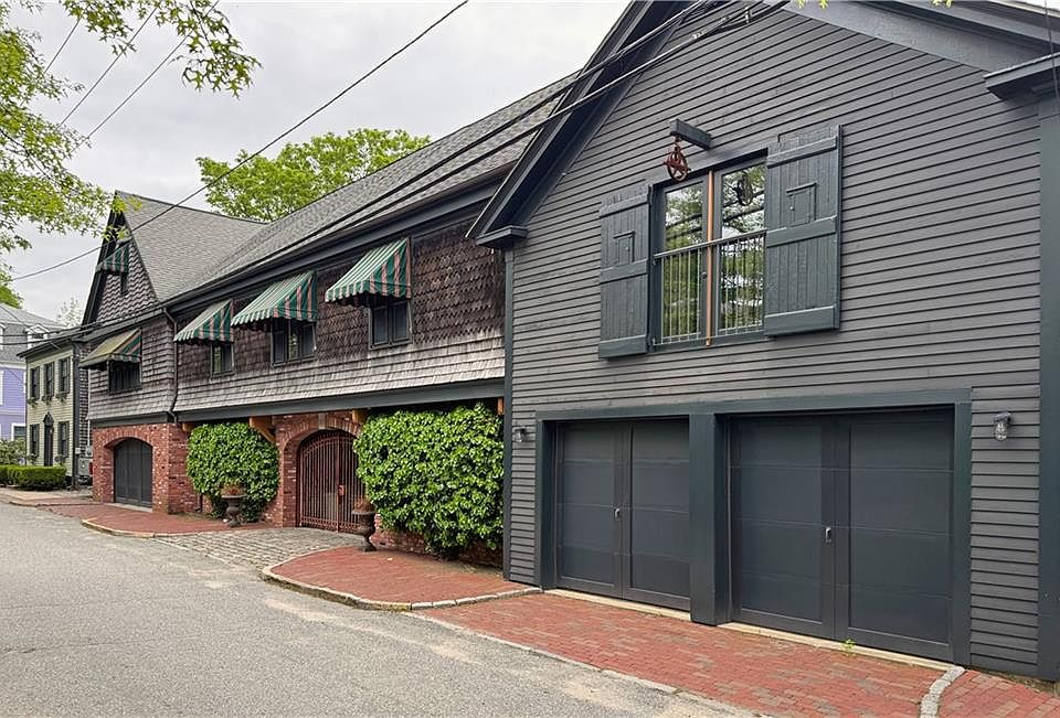 Tucked along a quiet, tree-lined lane just a block from storied Bellevue Avenue, this distinguished carriage house evokes the grandeur of Newport’s Gilded Age. Built in 1998 in the coveted Kay/Catherine neighborhood, it's just steps from the Newport Art Museum, Redwood Library, and the city's most elegant shops and cafés. The cobblestone courtyard is flanked by lush gardens, a studio wing and dramatic great room featuring a stone fireplace and floor-to-ceiling French doors. On the street side, and arched entryway with wrought iron gates provide a glimpse into the private, cobblestone courtyard inside. This secret space is home to ornamental gardens, a bamboo grove, and a tranquil side courtyard radiate out from the central courtyard. The interior features a spacious living room with a wall of French doors overlooking the courtyard. Three+ garage bays offer protected parking and generous storage. A rare blend of historic charm and modern comfort, this carriage house is a true jewel in the heart of Newport.