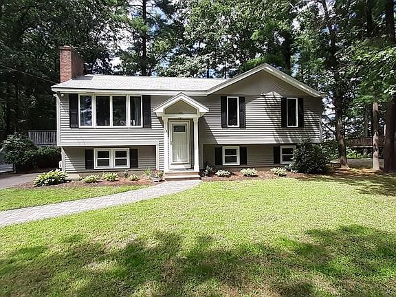 WELCOME HOME to this bright and sunny turnkey home with open concept floor plan and gleaming hardwood floors. Move right in and enjoy the updated kitchen with SS appliances and 2 tiered granite center island with bar seating. Plenty of room for everyone to gather. Liv Rm/Din Rm with fireplace and large picture window. 3 bedrooms round out the first floor. Finished lower level with fireplaced family room, 2 more rooms and full bath with laundry. Plenty of storage including huge walk-in closet and cabinets in lower level. Newly paved driveway, beautiful cobblestone walkway and fenced back yard. Located in quiet neighborhood on a dead end street adjacent to golf course. Short walk to lake, town beach and playgrounds. Convenient location with easy commuter access to highways. Perfect opportunity to take advantage of all Westford has to offer including top-rated school system.