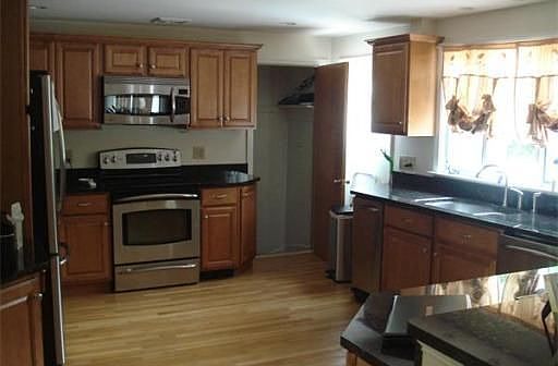 This Beautiful Sunny Ranch is sitting on over 1 acres landscaped flat land tree lined and privacy Suitable for entertaining with Timber Tech large deck, the house was renovated a few years ago, open floor plan Kitchen with granite counters and Maple cabinets all stainless steel appliances/hardwood floors/updated bath rooms/electric and light Central air and recently refinished basement, Do Not Miss on the property with the opportunity to add your own addition at any time in the future.