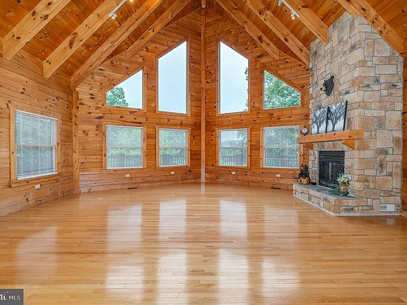 Discover your private move-in ready retreat in this stunning 6-bedroom, 2.5-bath custom log home nestled on 25.79 acres within a highly sought-after gated community. Enjoy breathtaking mountain views and expansive fenced areas, perfect for relaxation or productivity with the convenience of high-speed internet. Interior Highlights: vaulted ceilings and oak floors, pine walls and ceilings for a rustic charm, home theater system, cozy stone gas fireplace, modern kitchen with granite countertops, built-in wine rack and stainless steel appliances, hard wired alarm system, spacious upstairs open loft area, and finished basement for additional living space. Exterior Features: Recently stained logs. 30 x 40ft 3-car detached garage with 9ft doors, secure fenced area for pets, reliable full-home generator, inviting covered porch, durable metal roof. Home has a new well pump and pressure tank. Conveniently located with easy access to Corridor H, you're minutes away from restaurants, shopping, and and outdoor activities like skiing and kayaking within an hour. This property is just two hours from the Washington, DC area and a quick 15-minute drive to Moorefield, Lost River, and Wardensville. This is the perfect turn-key home for those seeking a serene escape without sacrificing modern amenities. Click on available Virtual Tour and make an appointment to see today!