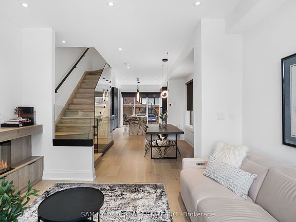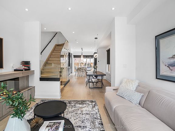 Discover this stunning end-unit townhome, ideally located just steps from the charm of Downtown Streetsville and the convenience of the GO Station. Offering 1,936 sq ft of professionally designed living space, this rare home overlooks a peaceful courtyard and features over $250,000 in high-end upgrades - a true standout among builder-grade units. Step inside and experience true turnkey living! You're welcomed by a thoughtfully designed entryway with custom built-ins, blending function and style. The main level boasts a desirable open-concept layout anchored by a stunning chefs kitchen, complete with the largest centre island on site, a custom coffee bar, sleek porcelain countertops, and top-of-the-line Fisher & Paykel appliances, making it the ultimate space for both entertaining and everyday living. A large balcony equipped with gas and water lines extends your living space outdoors. At the heart of the living area, a striking modern fireplace is complemented by custom cabinetry, creating a perfect balance of cozy ambiance and timeless style. Upstairs, discover two well-appointed bedrooms, a four-piece washroom, a conveniently located laundry room, and a true primary retreat featuring a fully reimagined, spa-inspired ensuite. Indulge in a spacious walk-in shower, heated floors, a 10-ft floating double vanity with Caesarstone countertops, and refined porcelain tilework for a truly luxurious experience. Don't forget the generous walk in closet! Additional features include wide-plank 7" vintage hardwood floors, a private 2-car garage with ample storage, motorized blinds throughout most rooms, abundant natural light from extra windows, and enhanced privacy unique to end units, all complemented by sophisticated designer finishes. End units of this quality are seldom available, presenting a rare opportunity to enjoy the finest in modern living within one of Mississauga's most coveted communities. Effortless luxury is at your fingertips...simply move in and enjoy!