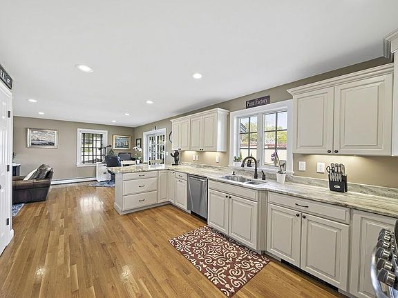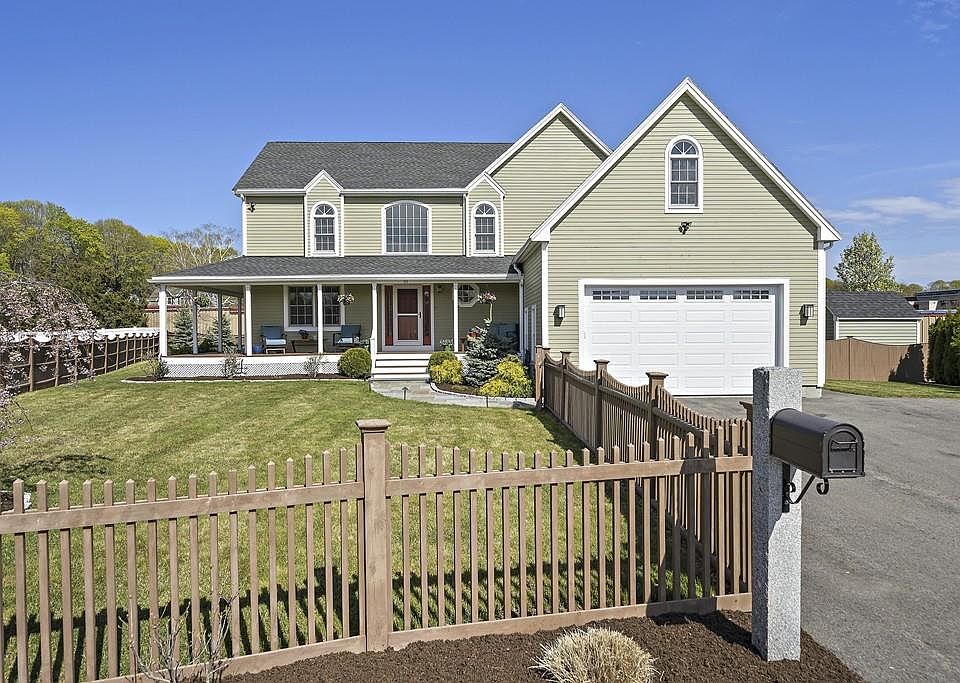 Custom Built Riverdale Colonial, conveniently located to 128 & all that Gloucester offers. Newly constructed in 2013, & meticulously maintained, this home offers modern amenities & custom details. From the charming wrap-around porch & gracious entry, you will appreciate the open floor plan, high ceilings, gorgeous hardwood floors & spacious, light-filled rooms. The kitchen features stainless appliances, including a double oven & wine cooler, as well as granite counter tops & a pantry for organizing. Lower level is beautifully finished & features a wet bar, full bath & exterior access. Appointed tastefully throughout, this home provides the perfect space for both indoor & outdoor entertaining. The rear porch overlooks a blue stone patio, with pretty plantings & a fully fenced yard. Buderus gas burner system, 220 amp electrical service & central air. Many upgrades under current ownership include mature trees planted, sprinkler system, cobble stone borders, custom shed, 8 Person Hot Tub.