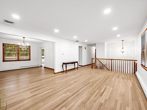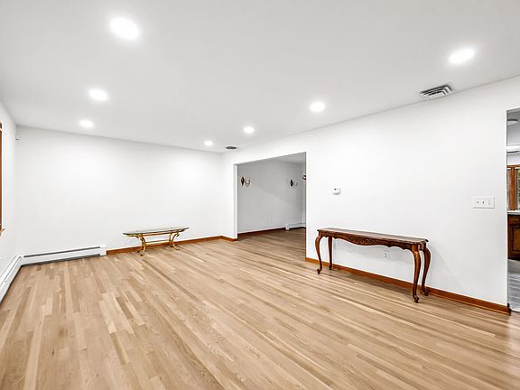 Welcoming and well-maintained 4-bedroom, 2.5-bath bi-level in a prime Paramus location on a quiet street. This move-in ready home offers an open entry foyer, formal living and dining room with hardwood floors and fresh paint throughout, and a spacious eat-in kitchen with sliders to a large deck, perfect for outdoor entertaining. The updated full hall bath serves three generously sized bedrooms, including a primary suite with dressing area and a beautifully renovated en-suite bath. The ground level features a comfortable family room with a raised-hearth brick fireplace and sliders to a patio, a fourth bedroom, updated powder room, laundry room, and direct access to the attached 2-car garage. Additional highlights include a whole-house generator, central air, and 3-zone gas hot water baseboard heat. Conveniently located near major highways, schools, shopping, and parks. Pets conditional. Tenant responsible for all utilities, lawn care, and snow removal. Available for immediate occupancy.