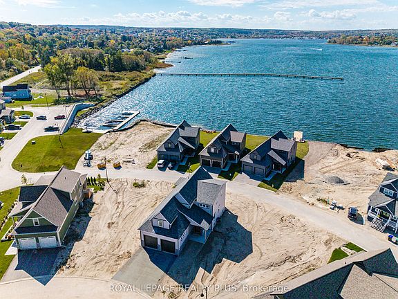 Stunning Detached home on premium pie-shaped lot with water views from many windows. Tecumseh "C" Model Home loaded with upgrades and extras; Primary bedroom with large 5-piece ensuite and walk-out to deck, additional 300 sq ft upgrade with 4th bedroom & additional 3 piece bath on upper level. Both levels offer 9' ceilings, 7" baseboards and 3" trim, oak staircase, upgraded 7" white oak engineered hardwood, porcelain tiles, quartz counters including upgraded Cambria on kitchen island and Primary ensuite. Chef's kitchen with centre island, ceiling height cabinets, lots of drawers and walk-in pantry for maximum storage. Sundrenched and flexible open concept layout provides ample space for family and entertaining. Walk out to covered deck from family room with walls of windows. Full unfinished basement with roughed in 3-piece bath and plenty of large above ground windows providing a bright open area to create your dream hangout space. Oversized garage with room for full size vehicles. Walk to historical Town of Penetanguishene, 8 minutes to Midland, 35 minutes to Barrie, 90 minutes to Pearson Airport. Close to Awenda Provincial Park, bike trail at your door with miles to explore on Tiny Rail Trail and beyond. Hike Simcoe Forest Tracts nearby. Play golf or pickle ball at walkable McGuire Park. Enjoy some of the best boating in Ontario; 30,000 Island Archipelago offers endless opportunities. Drop your kayak or paddle board in the Bay for a sunset ride over to Discovery Harbour. Enjoy the relaxed pace of life in a smaller community of friendly residents, abundant recreational options year round and within minutes of all amenities. Come check out the vibrant executive community of Champlain Shores with 2 private parks and rental docks for residents.