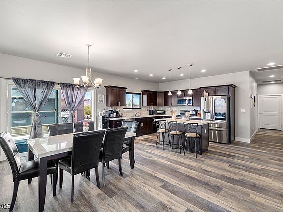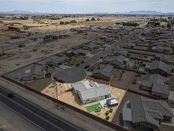 Experience the best of Pahrump living at the sought-after Cottage Grove Estates in the 89048 zip. This 2020-built, single-story home offers 3 bedrooms, 2 bathrooms, & a 3-car garage on an oversized cul-de-sac lot with RV/boat parking & gated side yard for all your outdoor toys. The stylish interior features 9’ ceilings, luxury vinyl plank flooring, soft-close espresso cabinets, quartz counters, stainless steel appliances, & pendant lighting over a large island, perfect for entertaining. The open layout flows seamlessly, while the spacious primary suite includes a walk-in closet, dual sinks, & a custom tile shower. Designed for all ages, the home is fully accessible w/ wide halls, 36” doors, & concrete ramps. Enjoy the enclosed gazebo w/ swamp cooler & mini fridge, great for relaxing or year-round gardening. Low-maintenance landscaping, block privacy walls, & a peaceful desert setting complete the picture. Just an hour from Las Vegas, & Minutes from Highway 160 & convenient shopping!