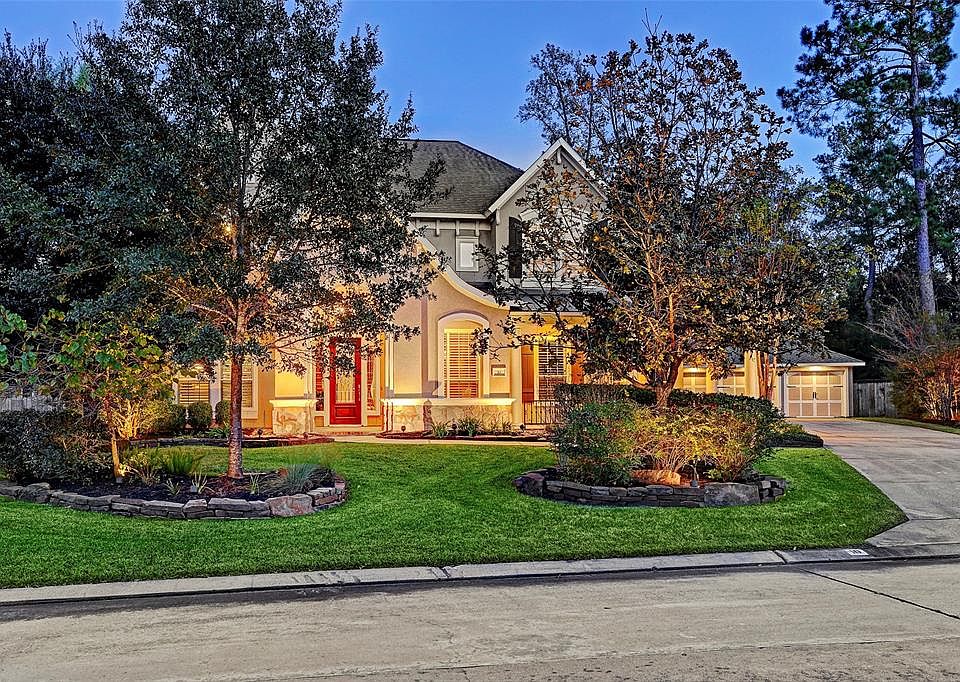 Welcome to this extraordinary home situated on an oversized, cul-de-sac lot in the Village of Sterling Ridge-The Woodlands. This beautiful executive home boasts four (4) bedrooms, two-story den, study, sunroom, game room plus media room. Rich wood floors can be found in the family, dining and study. The kitchen offers a large island, custom painted cabinets, Thermador cooktop, and opens to the breakfast room, sunroom and den. The sunroom is a wonderful, warm and inviting space with brick accents on the wall and floor; a wonderful space to sit and read your favorite book or just relax. Escape to the backyard oasis where you will find a cabana complete with summer kitchen as well as a resort-style saltwater pool/spa with great water features and a fire pit. The property is a wonderful place to entertain. Added bonuses to this unique property include plantation shutters, tankless water heater, accommodating floor plan with two staircases, wrap-around porch on the front exterior with sitting area off the sunroom, a covered patio and pavilion at the rear offers plenty of space for seating to entertain your guests while sitting by the pool. Outdoor lighting adds a wonderful ambiance. Call today for a private showing.