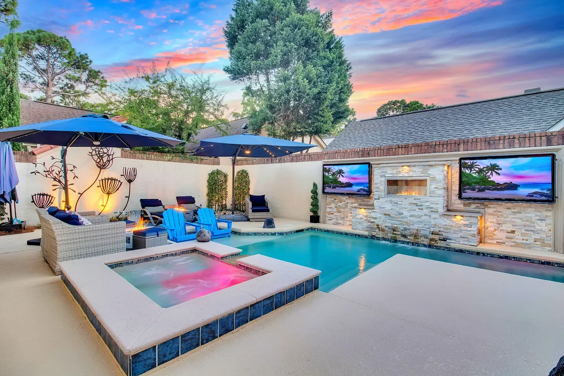 - Exterior features: Fence, Hot Tub/Spa, Sprinkler/Irrigation, Outdoor Kitchen, Pool, Patio, Storage