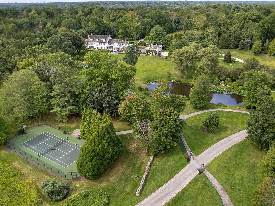 Introducing one of New York's most prestigious estates: a rare opportunity to own a historic piece of history elegantly nestled atop 14+ park-like acres in Purchase. This illustrious and stately turn-of-the-century residence, was the setting for the blockbuster film "Goodbye Columbus." A quiet country manor that's exceptionally private and secure, the estate is a stunning work of art, beautifully situated behind a gated entry at the end of a long, meandering driveway. The property boasts acres of lush rolling lawns adorned with over 35 years of seasonal perennials in year-round bloom, a glorious fenced saltwater pool and patio, five-hole putting green, pickleball, basketball & tennis courts, zen-like meditation garden, and a one-acre freshwater pond with koi and carp. Encircling the property is a half mile jogging path with a grove of weeping willows, a spectacular oasis of hydrangeas, indigenous stone walls, a shady gazebo, and a charming life-size dollhouse. Inside, the home is breathtaking, with 11,792 sq ft of custom-crafted beauty featuring 7 bedrooms, 6.3 bathrooms, and 3 offices spread over three sunlit floors. Every room offers blissful garden views due to the home's elevated position, from the grand full-length entrance hall to the dual living rooms, one of which opens to a postcard-perfect covered veranda. The refined formal dining room can seat a dinner party for 80. The exceptional kitchen includes two La Cornue ranges, a hammered copper and wood island, a sunlit breakfast area, and an adjacent family room, both opening to the patio. The primary suite exudes elegance with two luxurious ensuites, two walk-in closets, and two private balconies. This home offers endless highlights, including a sprawling third-floor playroom, two saunas, a fabulous mudroom opening to the attached 2-car garage and separate golf cart garage (with a Club Car included in the sale), and a picturesque detached 4-car garage with a carport. A new realm of luxury awaits just a short drive to Rye's vibrant town center, 10 minutes to Westchester County Airport and only 35 minutes from NYC.