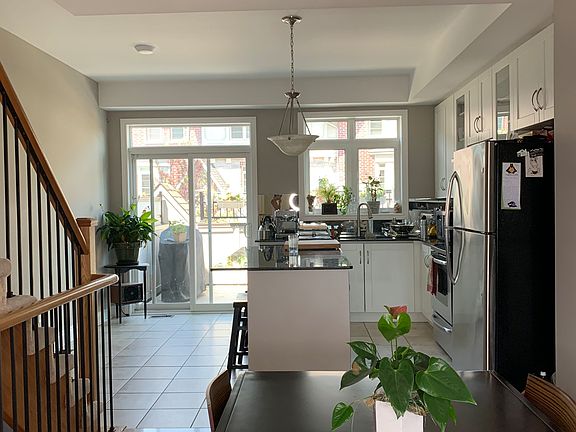 Welcome to this stunning and spacious 3-bedroom, 3-bath townhome with over 1,900 sq. ft. of living space and a 2-car garage! Bright open-concept main floor features hardwood throughout, a cozy fireplace, and walkout to a private sunny deck. Gorgeous eat-in kitchen with granite counters, centre island, and ample storage. Two generous bedrooms and a full bath on the second floor. Top-level primary retreat offers a walk-in closet, 5-piece ensuite with soaker tub and separate shower, plus another private balcony. Situated in the heart of Stonegate-just steps to parks, schools, restaurants, Humber Bay Shores, the lake, Costco, and Grand Avenue Park. A perfect mix of style, space, and convenience!