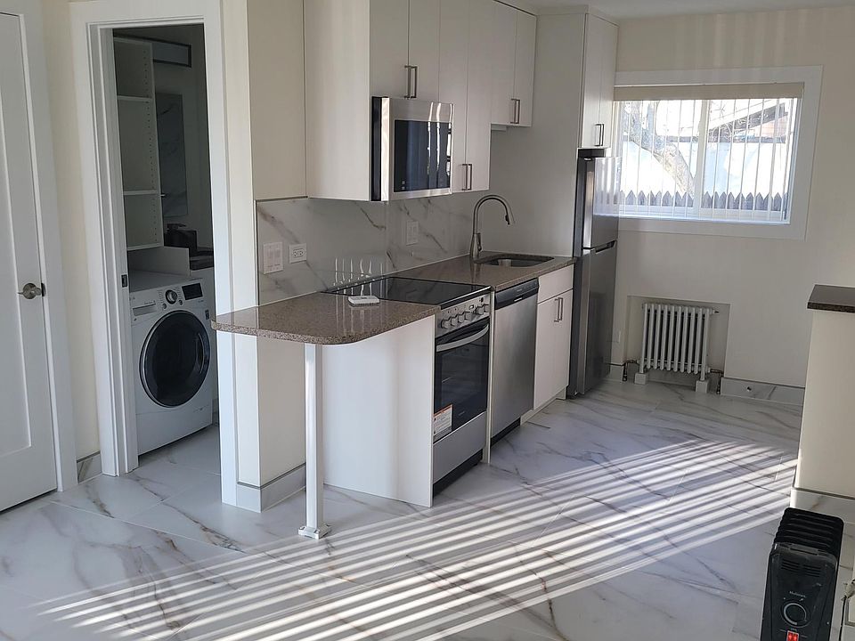 Completely remodeled ,never used,new ss aplliances ,washer and drier in unit,brand new split system cold and heat ,along with new boiler for additional heat,new windows ,very warm,very quiet street,behind highland park golf course,1 car garage and additional space for parking walking distance from restaurants and metra station,you MUST see Renter is respocible for gas and electric ,water is covered by lanlord