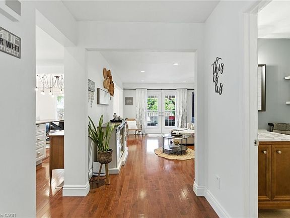 Beautifully updated three-bedroom home on Hamilton Mountain, offering nearly 2,200 square feet of living space! Tucked away on a quiet family-friendly dead-end street, this home is steps from St. Teresa of Calcutta Catholic Elementary and Lincoln Alexander School, with a scenic walking trail at the other end. Just minutes to the Linc, Red Hill, shopping, transit, and more—this location truly has it all. Inside, the home features a large family room with cathedral ceilings, a wood-burning fireplace, and abundant natural light—perfect for relaxing or entertaining. The main level also offers hardwood floors, a spacious living and dining area, kitchen with stainless steel appliances and a centre island, plus a powder room, all designed for comfort and convenience. Garden doors lead out to the maintenance-free yard, where you’ll enjoy a large composite deck with glass railings, a covered hot tub area, a propane firepit, and a natural gas line for your BBQ or future outdoor kitchen. Upstairs, the spacious primary bedroom features a walk-in closet and three-piece ensuite, complemented by two additional generously sized bedrooms and a four-piece main bathroom, all equipped with custom blackout blinds. Plenty of natural light and thoughtful finishes make the upper level comfortable and functional. The basement provides a flexible living space with separate entrance and drywall already in place, ready for your personal touches. Parking and storage are a breeze with a double-car garage featuring 60-ampa service and an electric car charger, plus a concrete double-wide driveway. Updates include roof (2020) Fridge and Stove (2023), a tankless water heater (2022), and new A/C (2022) for added peace of mind. Don’t be TOO LATE*! *REG TM. RSA.