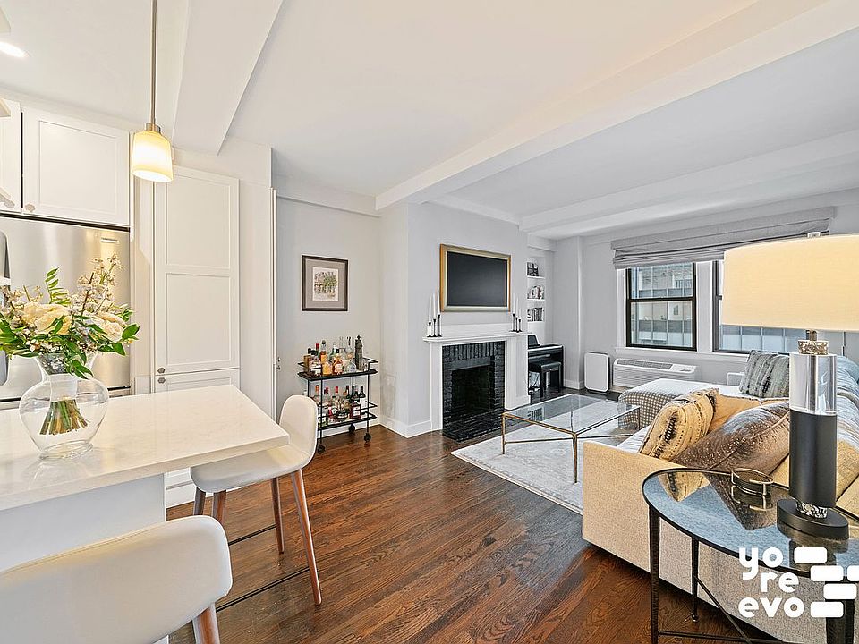 Move right into this renovated south-facing two-bed, one-bath prewar home with a wood-burning fireplace on Mitchell Place, a historic block between Sutton Place and the United Nations.