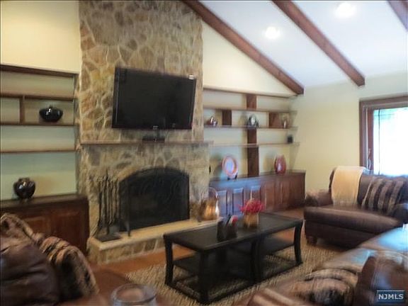 Sprawling 3 bedroom Raised Ranch with gourmet kit., recently remodeled with breakfast area granite-SS appliances- sliders to large 2 level deck and private yard - HW floors, 2 -C/A - Large great room Great rm features field stone fireplace- cathedral ceilings and all natural wood trim and built in shelves w/sliders to deck - MBR suite and 2 other bedrooms - Fin. Basement with walk out