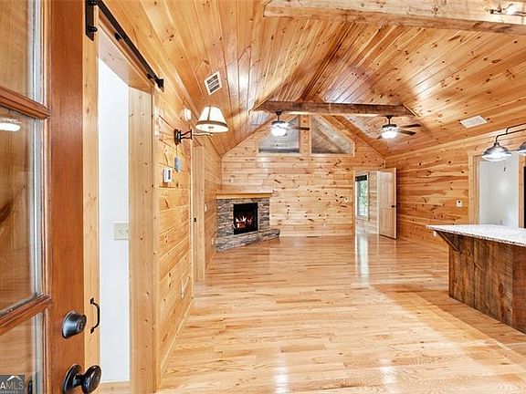 Welcome home to your cabin in the woods! Upon driving home, you are greeted by the circular driveway that leads to the charming covered front porch where you can sip on your coffee in the morning. Upon entering the home, the tall, vaulted ceilings and wood finishes remind you that you've made it to the mountain getaway you've been dreaming of. Features include 2 large bedrooms and 2 full bathrooms, as well as a den space that has its own fireplace. The open concept living area includes a second fireplace in the living room, as well as a well-appointed kitchen showcasing the rough sawn cabinetry and granite countertops. Head outside to spend time on the back deck, or explore the woods on the large 0.81 acre lot. The covered carport area sits next to the home, and has an additional enclosed storage area that can be used as a workshop as well. There is also a shed on the property, and a firepit area to sit around on cool Fall evening. All this while being located within the beautiful Coosawattee River Resort, which features pools, tennis courts, fish trap parks, hiking trails, tubing down the Coosawattee River, fishing and more! Come check it out today!