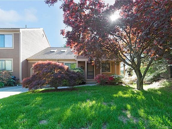 Wonderful, spacious 4 bedroom, 3 1/2 bath end unit with attached garage. This first floor features an eat-in kitchen, formal dining room/living room combination with wood burning fireplace and a slider to a large deck (the entire width of the condo) with partial awning. There are 2 bedrooms on this floor including a large master with full bath. The lower level has an additional 2 bedrooms, huge living room/recreation room, and a room which could easily be a second kitchen for the lower level. This space is perfect for an in-law set up with separate entrance and parking in the rear. Over the garage is an additional large room, complete with half bath, perfect for a studio/office or an additional bedroom. Wonderful, quiet location in complex near rear entrance/exit. Farmington Woods offers 24 hour security, several swimming pools, tennis, clubhouse with restaurant, and more.