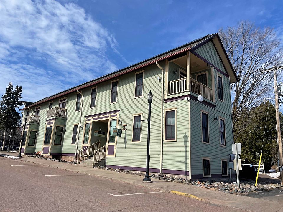 This inviting 2-bedroom, 1-bath condo is ideally situated in the heart of Bayfield, offering elevated views of Lake Superior, Madeline Island, and the vibrant downtown scene. Set in the historic Andrew Tate Building—originally built in 1883 and tastefully renovated in the 2000s, this fully furnished unit features an open-concept layout, a balcony perfect for morning coffee, and a proven track record as a successful vacation rental. Currently enrolled in a rental program with reservations through 2025. New owners must honor bookings and may retain management through the end of the year. A rare opportunity to own a piece of Bayfield history with modern comfort and income potential in an unbeatable location!