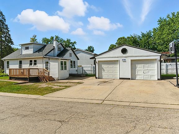 Don't miss this updated 3-bedroom, 1.5-bath cottage style home that perfectly combines character and comfort. Step inside to a bright and welcoming layout freshly painted throughout. A spacious living room flows directly to the updated kitchen and family room, as well as a main floor primary bedroom and half bath. There is also a full unfinished basement just waiting for you to make it into your own. Upstairs you will find two more large bedrooms and an updated full bath. This lovely home is on an extra deep corner lot with two car detached garage, roomy shed for more storage and brick grill. All new windows throughout, new luxury vinyl plank flooring throughout, a new wood deck, new toilets and a new refrigerator all in 2025. Roof 2018, Furnace and A/C 2012, Washer/Dryer 2015. This location is ideal and close to restaurants, local beach, shopping and more. Walkable to elementary school too. Perfect residence for a first time home buyer or an investor.